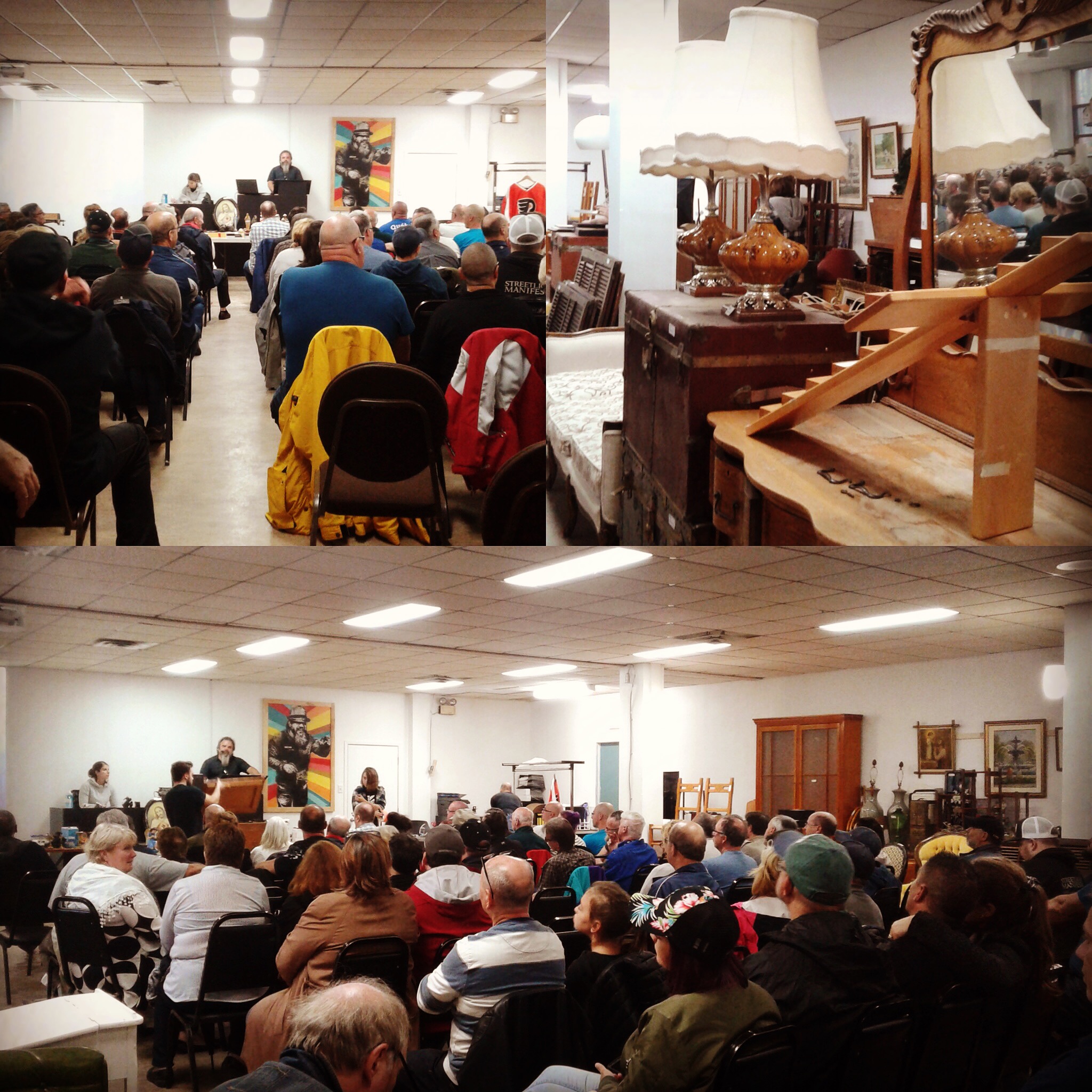 Encan en ville, vente à la criée d'antiquités et brocante.